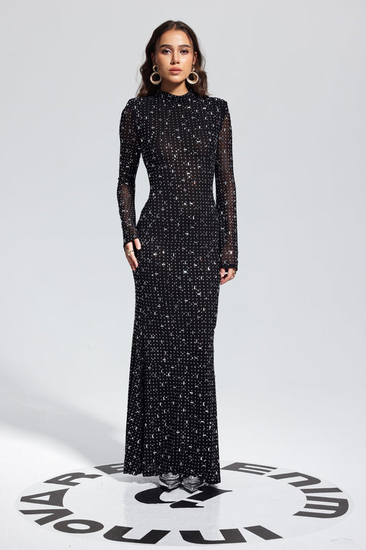 Andie — Rhinestone Long-Sleeve Bodycon Maxi Dress