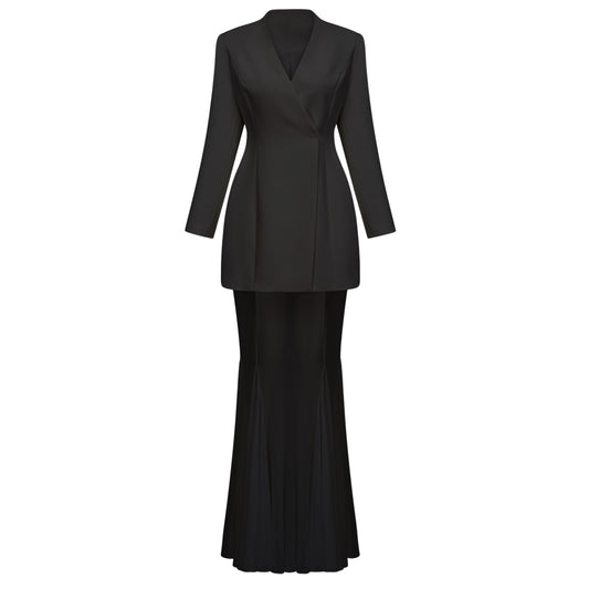 La Ombre Tailleur — Structured jacket and sheer godet skirt set