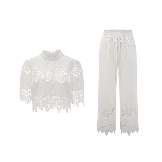 La Coupe Épure — Cropped lace-trim top and wide-leg trousers