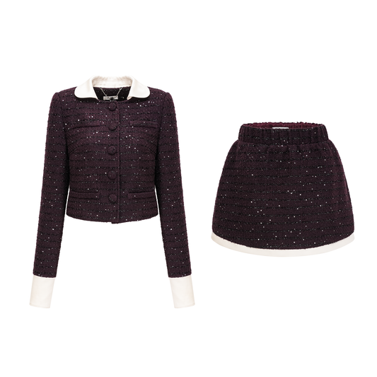 La Pourpre Éclatante — Cropped tweed jacket and mini skirt set