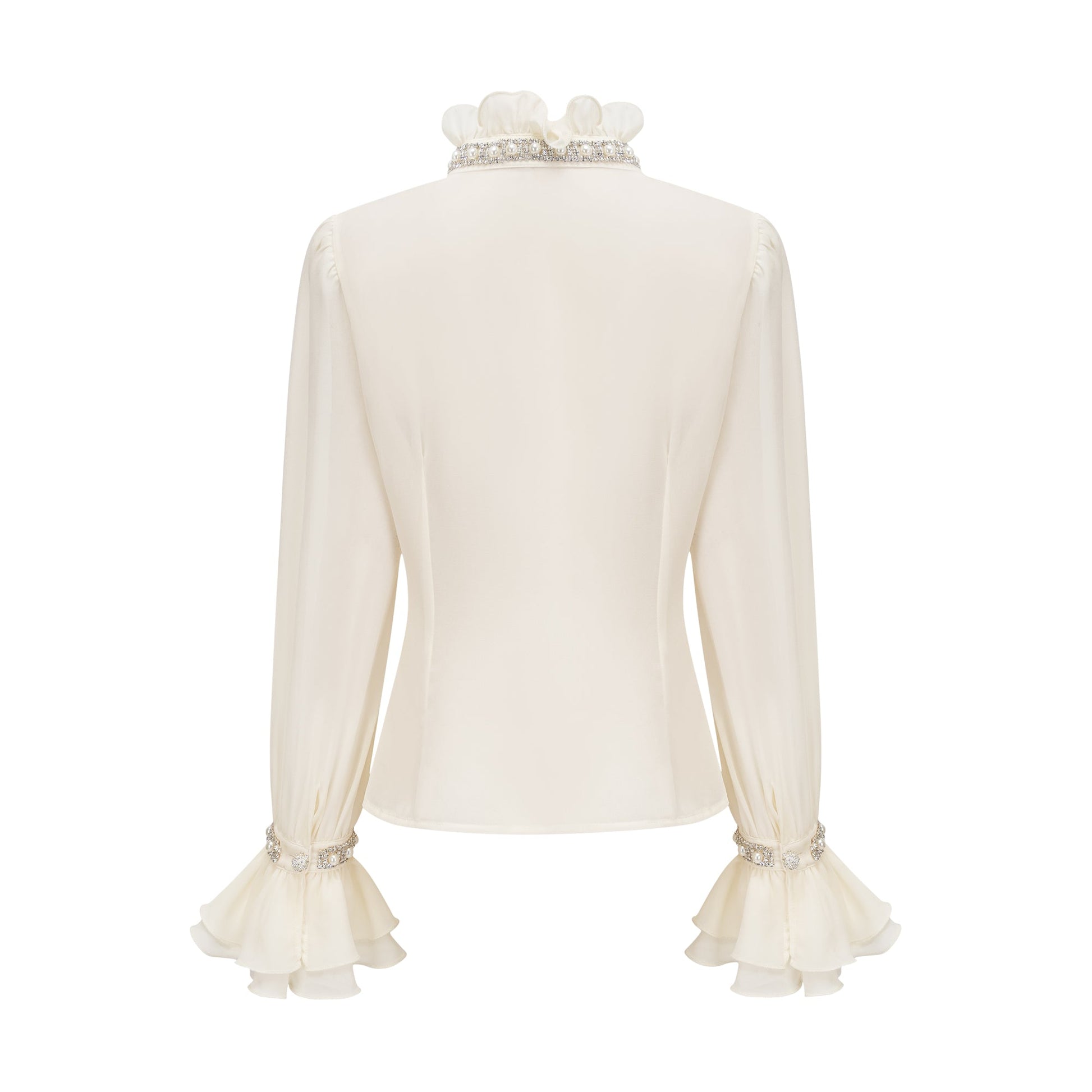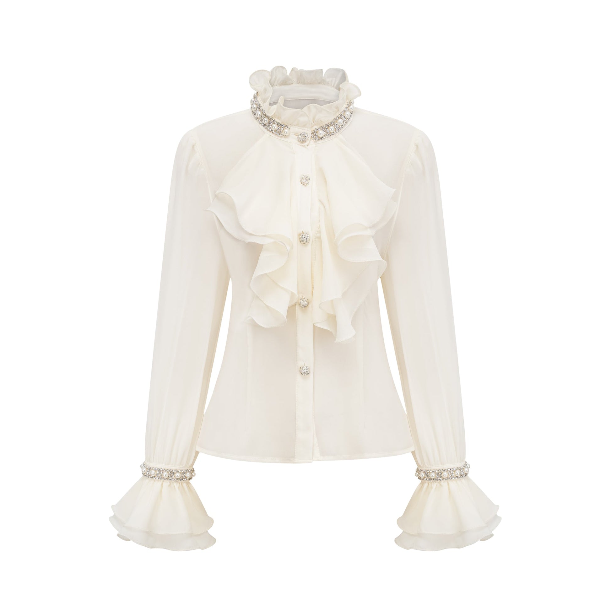 La Rêverie Éclat — Ruffled pearl and crystal blouse